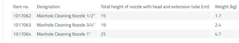 Head for the manhole cleaning nozzle available separately (item no. 1017061).