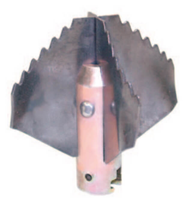 Cross-blade drill 16 – 32 mm for textile, mud deposits or pipe incrustations. Universal pipe cleaning tool with hardened cross blades made of high-strength spring steel, each riveted to the coupling. Blade diameter from 25 – 115 mm, working range 38 – 250 mm.